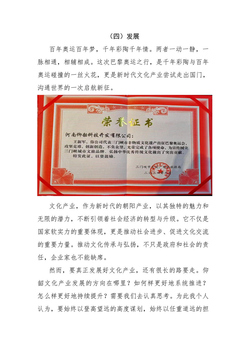 董事長(zhǎng)王新軍攜"花開奧運(yùn)“文創(chuàng)彩陶遠(yuǎn)赴巴黎奧運(yùn)會(huì)